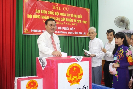 *Đến 9 giờ sáng 22-5, tại khu vực bỏ phiếu số 14 thuộc xã Ea Wer (huyện Buôn Đôn), 156 cử tri là cán bộ, chiến sĩ thuộc Ban Chỉ huy Quân sự huyện Buôn Đôn và Đại đội Bộ binh 5 đã hoàn thành việc bỏ phiếu bầu đại biểu Quốc hội khoá XIV và đại biểu HĐND các cấp nhiệm kỳ 2016-2021. Tỷ lệ cử tri tham gia bỏ phiếu đạt 100%.