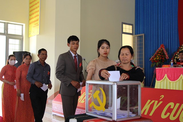 | Các đại biểu bỏ phiếu bầu Ban Chấp hành Đảng bộ thị trấn khóa V, nhiệm kỳ 2020 - 2025. |