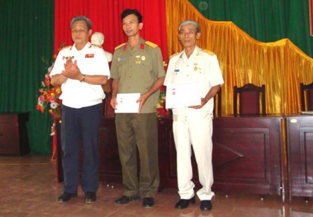 | Lãnh đạo Ban liên lạc bộ đội Trường Sơn tặng Kỷ niệm chương cho các hội viên. |