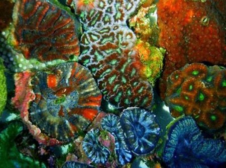 | Rặng san hô phát sáng nhiều màu sắc được tìm thấy ở vùng biển nông gần đảo Lord Howe. |