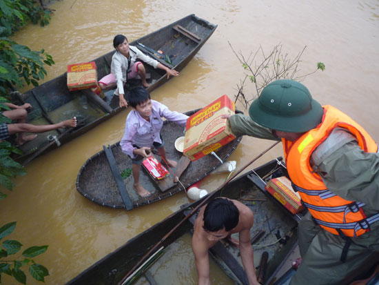 | Cứu trợ lương thực, thực phẩm để chống trọi với bão, lụt là nhu cầu thiết yếu đối với đồng bào miền Trung |