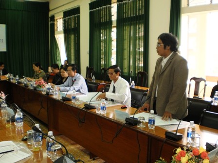 | Hiệu trưởng Trường Đại học Tây Nguyên Trần Xuân Thao, Trưởng Khối thi đua số 11 báo cáo tổng kết phong trào năm học 2010-2011. |