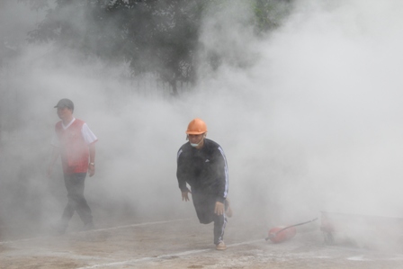 | Phần thi chạy tiếp sức 300 mét nam - nữ tổ chức chữa cháy và cứu tài sản. |
