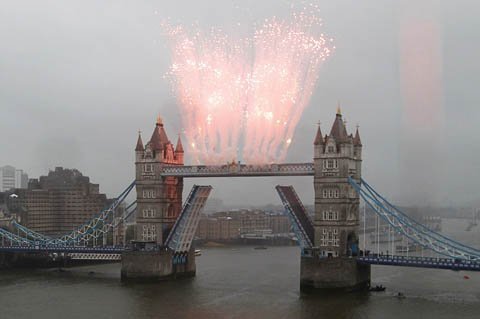 | Thuyền chở gia đình hoàng gia đi qua cầu Tháp |