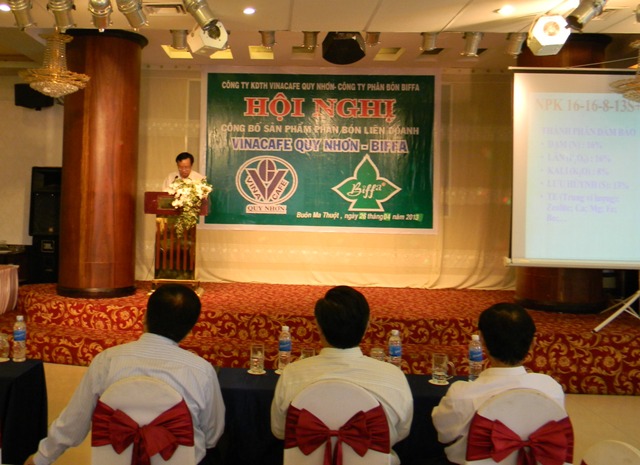 Ngày 26-4 tại TP. Buôn Ma Thuột, Công ty kinh doanh tổng hợp Vinacafe Quy Nhơn phối hợp với Công ty Cổ phần phân bón và Dịch vụ tổng hợp Bình Định (BIFFA) tổ chức Lễ công bố dùng dòng sản phẩm phân bón mới NPK dùng cho tất cả các loại cây trồng.