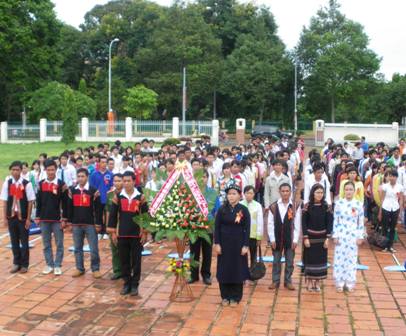 | Trước khi tiến hành buổi gặp mặt các sinh viên DTTS đã dâng hoa tại Tượng đài Bác Hồ với các cháu thiếu nhi các dân tộc Dak Lak |