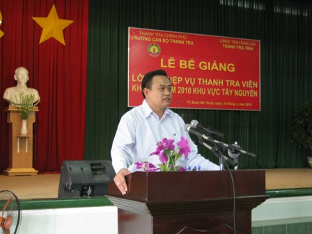 Chiều 30-8, tại Trường Chính trị tỉnh, Trường Cán bộ Thanh tra Chính phủ phối hợp với Thanh tra tỉnh đã tổ chức lễ bế giảng lớp bồi dưỡng nghiệp vụ thanh tra viên khóa 20 năm 2010 cho 130 học viên là cán bộ, công chức làm công tác thanh tra đến từ 6 tỉnh thuộc khu vực miền Trung và Tây Nguyên: Dak Lak, Dak Nông, Gia Lai, Kon Tum, Lâm Đồng và Khánh Hòa. Các đồng chí Trần Sỹ Thanh, Phó Chủ tịch UBND tỉnh; TS. Ngô Mạnh Toan, Phó hiệu trưởng Trường Cán bộ Thanh tra Chính phủ cùng toàn thể học viên đã về dự