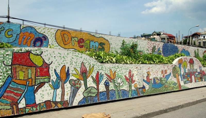 Con đường gốm sứ ven sông Hồng – lập kỷ lục bức tranh ghép gốm dài lớn nhất thế giới