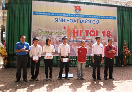 Sáng 25-4, Ban Thường vụ Tỉnh đoàn phối hợp với Thành đoàn Buôn Ma Thuột, Trung tâm Giáo dục Thường xuyên TP. Buôn Ma Thuột tổ chức chương trình điểm Sinh hoạt dưới cờ “Khi tôi 18”. Đây là 1 trong 4 nội dung sinh hoạt cơ bản của Chương trình “Khi tôi 18” năm học 2010 - 2011, nội dung gắn với tuyên truyền bầu cử đại biểu Quốc hội khóa XIII và Năm Thanh niên 2011.