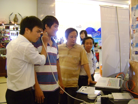 | Thử nghiệm máy siêu âm tim tại khu vực triển lãm. |