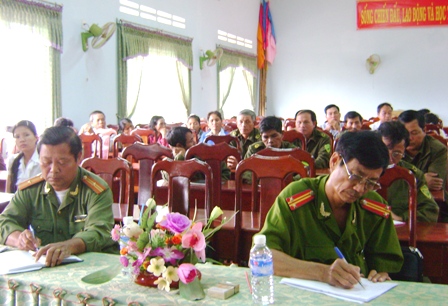 Tại diễn đàn, lực lượng Công an xã đã báo cáo sơ kết tình hình triển khai thực hiện “Học tập và làm theo tấm gương đạo đức Hồ Chí Minh"; "CAND vì nước quên thân, vì dân phục vụ”, công tác bảo đảm an ninh, trật tự (ANTT) địa phương. Theo đó, thời gian qua lực lượng Công an xã đã tổ chức 35 buổi phát động quần chúng tại 25 thôn, buôn; phối hợp với các ban, ngành, đoàn thể vận động quần chúng nhân dân hòa giải các vụ việc mâu thuẫn, không để hình thành điểm nóng; tổ chức lực lượng tuần tra, canh gác tại những địa bàn trọng yếu, kịp thời giải quyết những vụ việc phát sinh. Bên cạnh đó, Công an xã đã tiếp nhận và giải quyết 35 vụ vi phạm pháp luật, bắt giữ 4 đối tượng, quản lý 66 đối tượng; tổ chức tuần tra kiểm soát trên các tuyến đường góp phần bảo đảm trật tự an toàn giao thông…