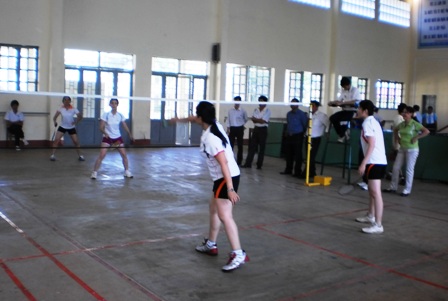 | Trường Cao đẳng Nghề Dak Lak và Cao đẳng Thanh niên dân tộc Tây Nguyên trong trận thi đấu môn cầu lông đôi nữ. |