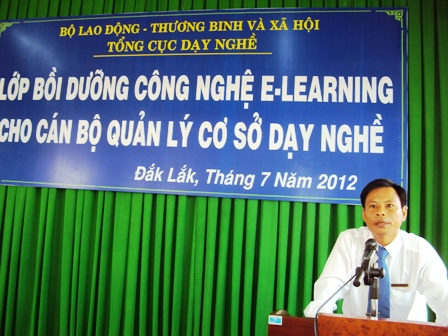 Ngày 3-7, tại TP. Buôn Ma Thuột, Tổng Cục dạy nghề (Bộ Lao động-Thương binh và Xã hội) đã tổ chức Khai giảng lớp bồi dưỡng công nghệ E-Learning (hình thức học tập dưới sự hỗ trợ của công nghệ thông tin và truyền thông) cho 30 cán bộ quản lý là Trưởng, Phó phòng, khoa thuộc các trường cao đẳng, trung cấp nghề đến từ 5 tỉnh Tây Nguyên: Dak Lak, Dak Nông, Gia Lai, Kon Tum và Lâm Đồng.