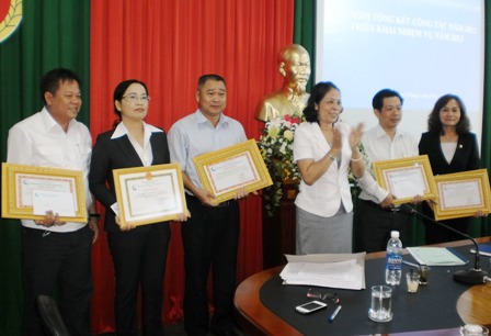 | Trao thưởng cho các lớp đoạt giải trong hội thao |