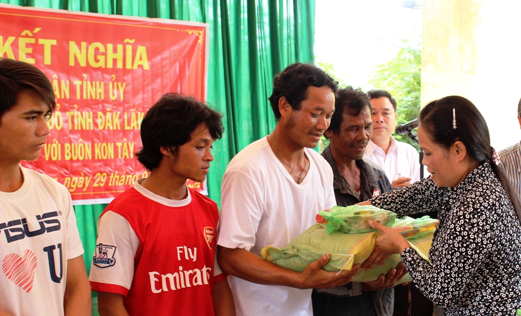 Thực hiện chủ trương của Ban Thường vụ Tỉnh ủy về việc triển khai công tác kết nghĩa giữa các cơ quan, đơn vị với các buôn đồng bào dân tộc thiểu số tại chỗ, ngày 29-9, Ban Dân vận Tỉnh ủy, Hội Chữ thập đỏ tỉnh và Trường Tiểu học Đinh Núp đã tổ chức lễ kết nghĩa với buôn Kon Tây, xã Ea Yiêng, huyện Krông Pak.