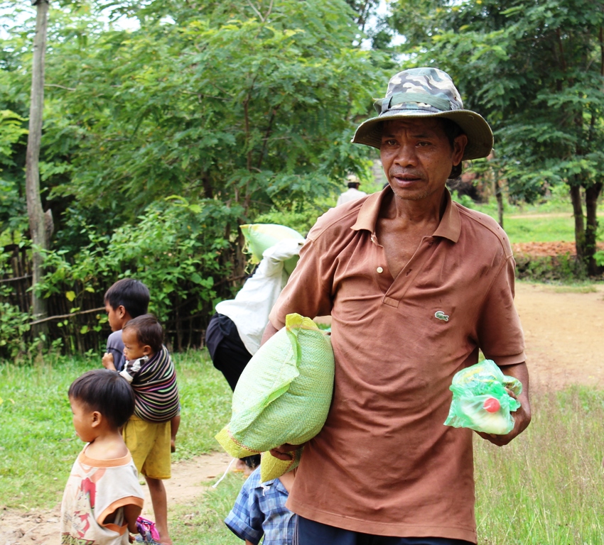 Niềm vui của người dân buôn Kon Tây khi nhận những món quà từ các cơ quan, đơn vị kết nghĩa. |