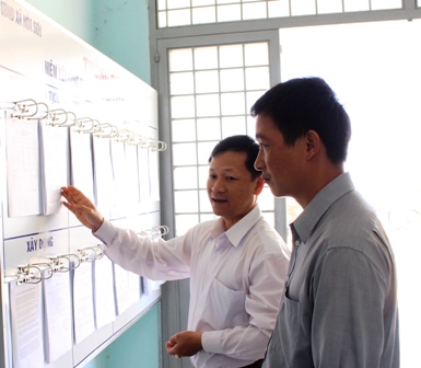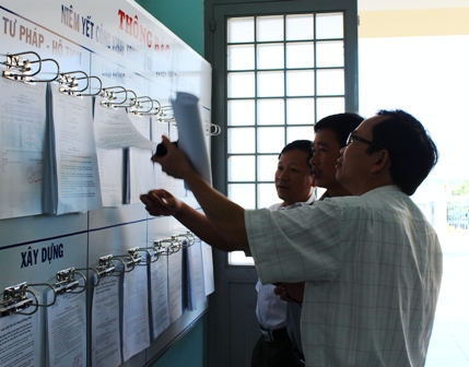 Kiểm tra việc niêm yết công khai TTHC tại bộ phận tiếp nhận và trả kết quả xã Hòa Sơn. |