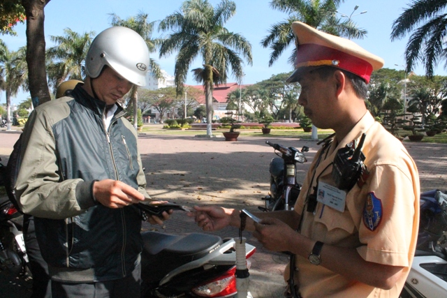 | Lực lượng chức năng lập biên bản xử phạt người điều khiển phương tiện vượt quá tốc độ cho phép |