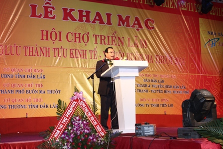 | Ông Nguyễn Anh Dũng - Chủ tịch UBND TP. Buôn Ma Thuột phát biểu khai mạc hội chợ, triển lãm |