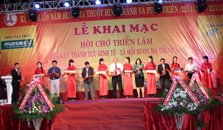 Tối 19-11, Hội chợ - triển lãm giao lưu thành tựu kinh tế - xã hội Buôn Ma Thuột năm 2014 đã chính thức khai mạc tại TP. Buôn Ma Thuột do UBND TP. Buôn Ma Thuột phối hợp với Sở Công thương Dak Lak tổ chức. Ông Y Dhăm Ênuôl, Phó Chủ tịch Thường trực UBND tỉnh, bà Mai Hoan Niê Kdăm- Phó Chủ tịch UBND tỉnh đã đến dự.