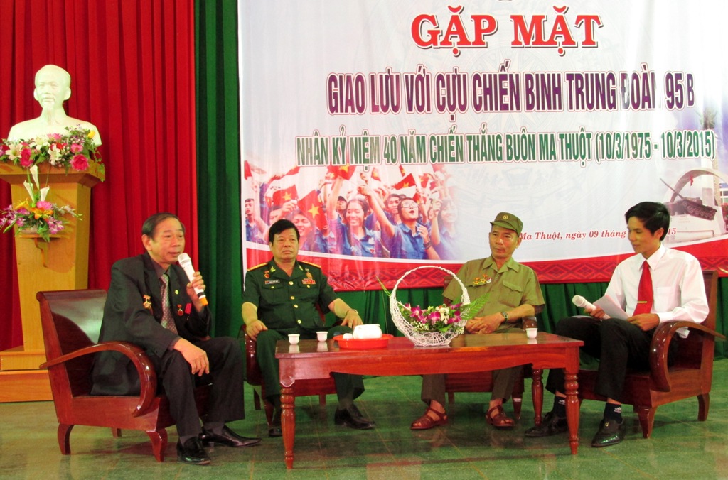 Nhân dịp kỷ niệm 40 năm Chiến thắng Buôn Ma Thuột (10-3-1975 – 10-3-2015), sáng 9-3 tại Trung tâm bồi dưỡng chính trị thành phố, Thành Đoàn Buôn Ma Thuột đã tổ chức chương trình gặp mặt, giao lưu với cựu chiến binh Trung đoàn Bộ binh 95B.