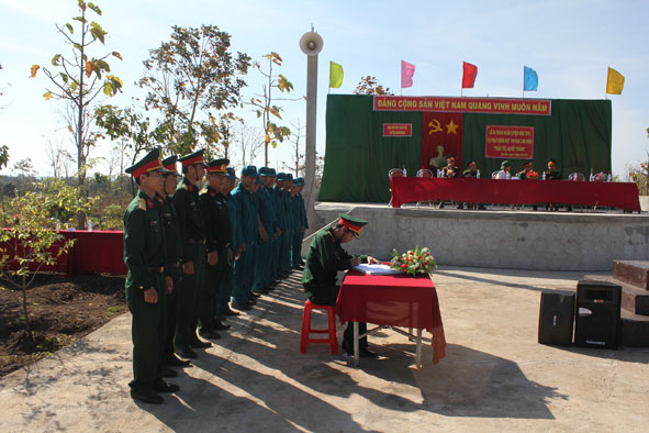 | Ủy viên Trung ương Đảng, Bí thư Tỉnh ủy, Chủ tịch HĐND tỉnh Niê Thuật tặng hoa tân Chủ tịch UBND tỉnh Phạm Ngọc Nghị tại kỳ họp bất thường HĐND tỉnh Dak Lak khóa VIII, ngày 10-2-2015. (Ảnh: T.L.) |
