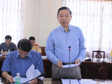 | Thứ trưởng Bộ Công an Tô Lâm phát biểu tại buổi làm việc |