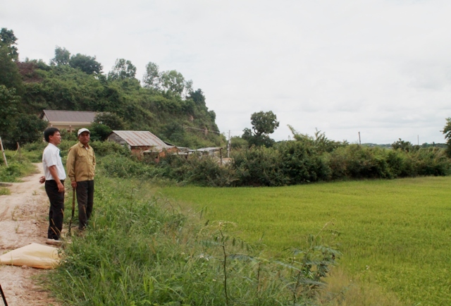 | Phó Chủ tịch UBND tỉnh Nguyễn Tuấn Hà báo cáo với Bộ trưởng và Đoàn công tác tình hình hạn hán xảy ra trên địa bàn tỉnh. |