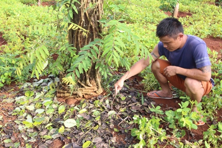 Hơn 1.000 trụ tiêu và 3 sào đậu phụng của gia đình ông Châu Văn Quang (SN 1964, thị trấn Quảng Phú, huyện Cư M’gar) bỗng dưng bị rụng trái, lá, tháo lóng hàng loạt sau khi phun thuốc bảo vệ thực vật khiến ông gần như điêu đứng, suy sụp.