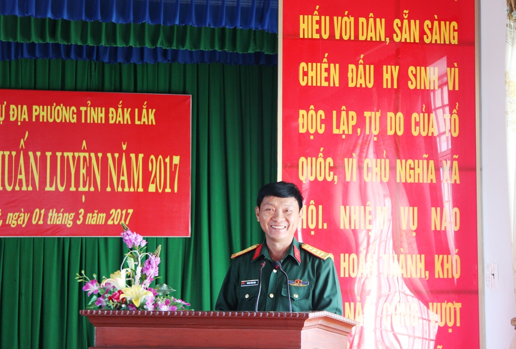 | Đại tá Ngô Văn Chiến, Hiệu trưởng Trường Quân sự địa phương tỉnh quán triệt nội dung, chương trình huấn luyện năm 2017. |