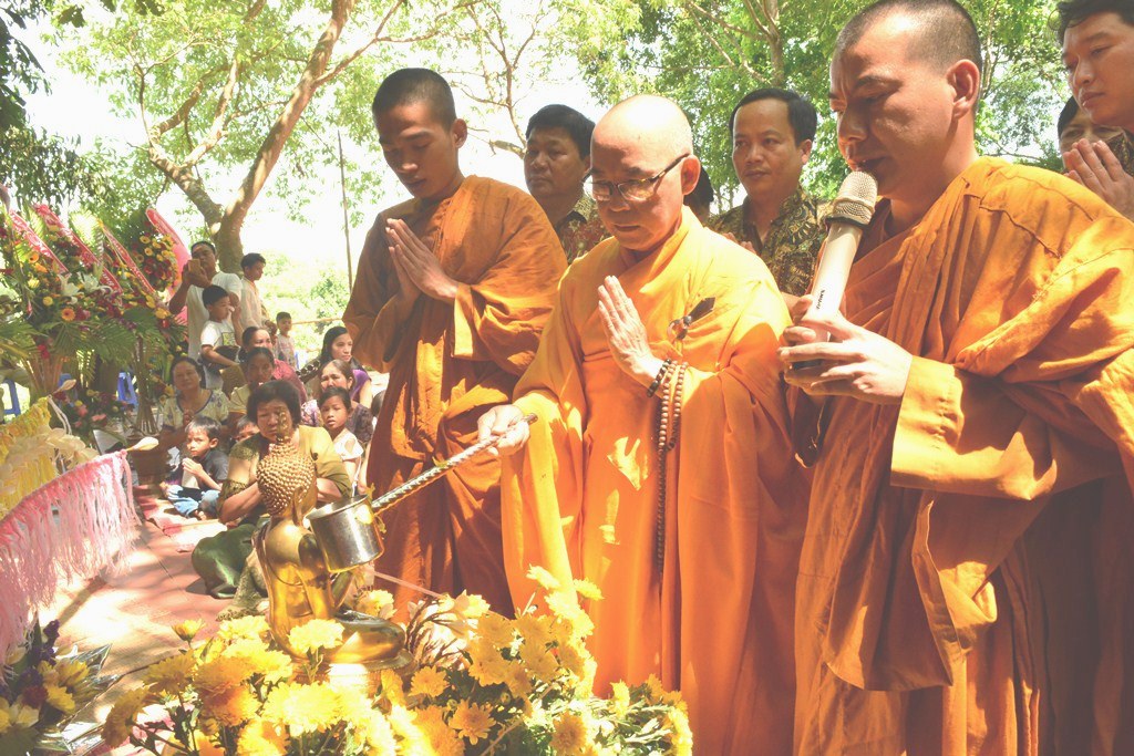 Các nhà sư cử hành nghi lễ tắm Phật. |