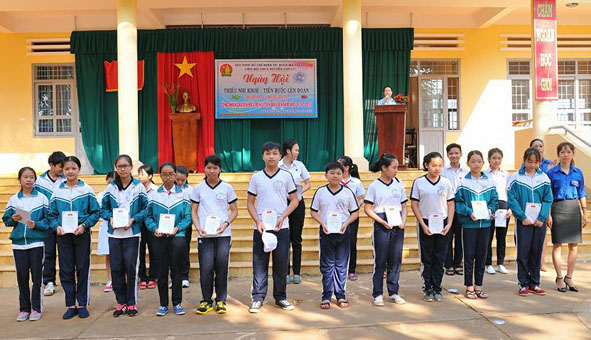 Trong dịp này, Hội đồng Đội huyện M’Đrắk đã trao 76 suất quà tặng các đội viên tiêu biểu, thiếu nhi nghèo vượt khó năm học 2016 – 2017; trao 6 suất học bổng Vừ A Dính cho học sinh có hoàn cảnh khó khăn.