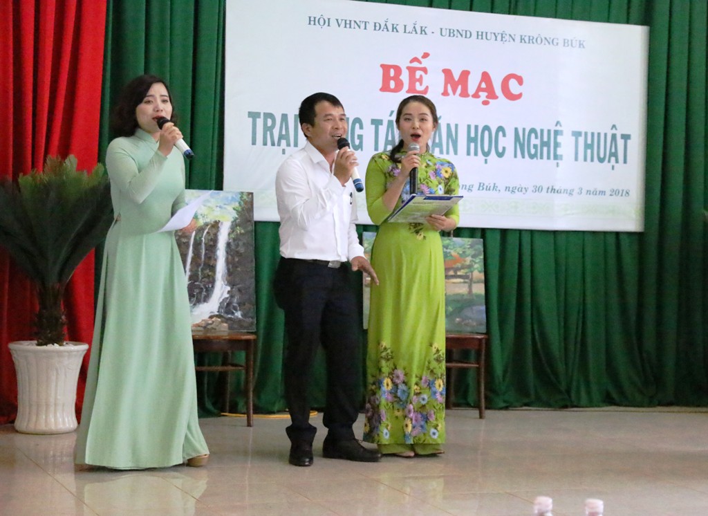 Tham dự lễ bế mạc có Chủ tịch Hội VHNT tỉnh Lê Khôi Nguyên; Phó Chủ tịch UBND huyện Krông Búk Lê Ngọc Hà; đại diện các ban, ngành, đoàn thể của huyện cùng các hội viên.
