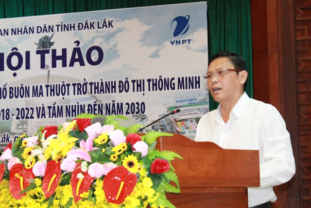 | Đồng chí Y Vinh Tơr, Bí thư Thị ủy Buôn Hồ phát biểu tại buổi sinh hoạt |