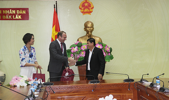 | Cán bộ BHXH TP. Buôn Ma Thuột tuyên truyền cho cán bộ phường Thành Nhất về lợi ích của BHYT, BHXH. |