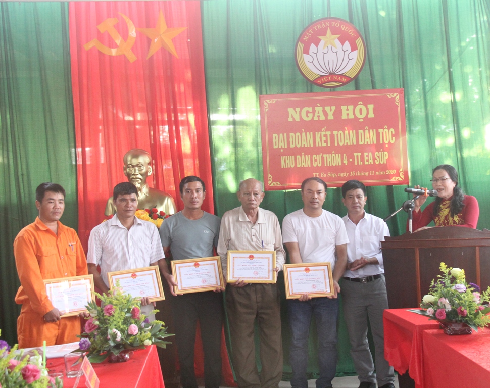 Nhân dịp này, Ban Dân Vận Tỉnh ủy đã tặng 1 căn nhà Tình nghĩa (trị giá 50 triệu đồng) cho hộ có hoàn cảnh khó khăn; trao 60 phần quà tặng các gia đình chính sách và hộ nghèo của buôn.