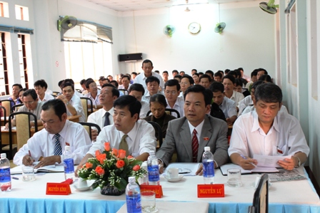 Tiếp đó, các đại biểu HĐND huyện đã tiến hành bỏ phiếu kín để bầu các chức danh chủ chốt của HĐND và UBND huyện khóa VIII, nhiệm kỳ 2011-2016. Đồng Nguyễn Kính, Phó Bí thư Thường trực Huyện ủy được bầu giữ chức Chủ tịch HĐND huyện khóa VIII, nhiệm kỳ 2011-2016; đồng Huỳnh Bài tiếp tục được bầu giữ chức Chủ tịch UBND huyện.
