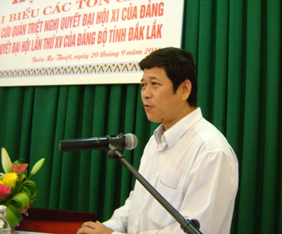 | Phó trưởng Ban Tuyên giáo Tỉnh ủy Bạch Văn Mạnh trình bày những nội dung cơ bản của Nghị quyết Đại hội XI của Đảng |