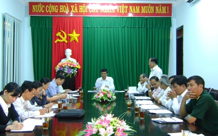 | Buổi làm việc giữa Đoàn công tác của Thường trực Tỉnh ủy với Ban Thường vụ Huyện ủy Ea Kar. Ảnh: N.X |