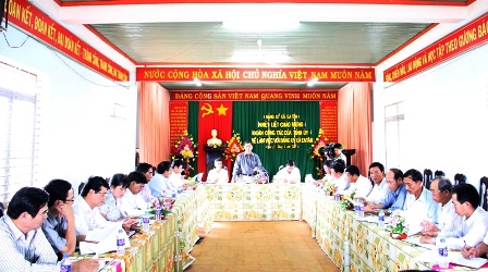 | Phó Bí thư Tỉnh ủy Cao Đức Khiêm phát biểu chỉ đạo tại buổi làm việc. |