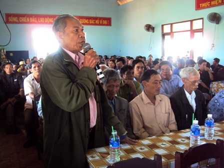 | Cử tri xã Ea Sol phát biểu ý kiến tại buổi tiếp xúc. |