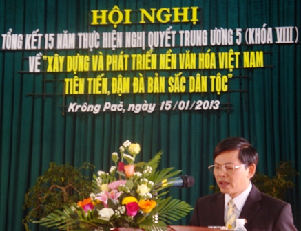 Sáng 15-1, Huyện ủy Krông Pak đã tổ chức Hội nghị tổng kết 15 năm thực hiện Nghị quyết Trung ương 5 (khóa VIII) về “Xây dựng và phát triển nền văn hóa Việt Nam tiên tiến, đậm đà bản sắc dân tộc”.