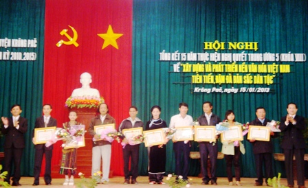 Tại Hội nghị 10 tập thể và 12 cá nhân được UBND huyện tặng Giấy khen vì có thành tích trong việc thực hiện Nghị quyết TW 5 (khóa VIII) về “Xây dựng và phát triển nền văn hóa Việt Nam tiên tiến, đậm đà bản sắc dân tộc”.