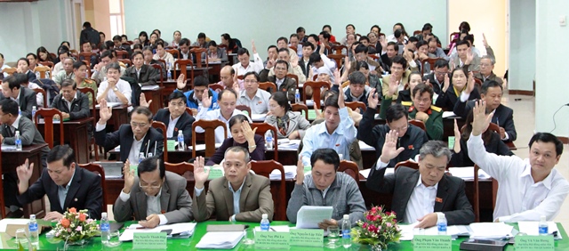 Hội nghị cũng đã thảo luận và biểu quyết thông qua Nghị quyết về nhiệm vụ năm 2015 với một số chỉ tiêu chủ yếu như: Giá trị sản xuất (theo giá so sánh năm 2010) phấn đấu đạt 4.925 tỷ đồng, tăng 16,49% so với năm 2014; tổng huy động vốn đầu tư toàn xã hội đạt 1.669 tỷ đồng; thu ngân sách đạt 66,363 tỷ đồng; giảm tỷ lệ hộ nghèo còn 3%; hoàn thành phổ cập mầm non cho trẻ 5 tuổi; kết nạp 160 đảng viên mới; 80% trở lên số tổ chức trong hệ thống chính trị xã, phường đạt vững mạnh...