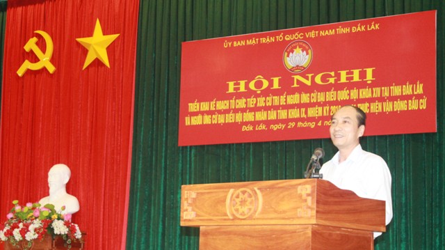 Theo đó, UBBC tỉnh đã công bố danh sách chính thức 15 ứng cử viên đại biểu Quốc hội khóa XIV tại 3 đơn vị bầu cử, số đại biểu được bầu là 9 người. Trong đó, Trung ương 4 người, dân tộc thiểu số 6 người (Êđê: 4 người, Chăm: 1 người và Mnông: 1 người), tôn giáo 1 người, nữ 3 người…