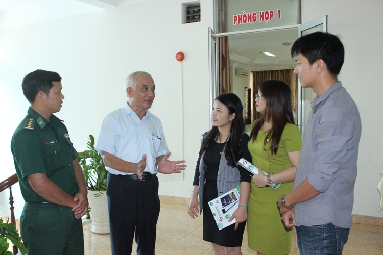 | Ông Y We Ktla (bên phải) thăm hỏi tình hình sản xuất, đời sống của bà con trong buôn. |