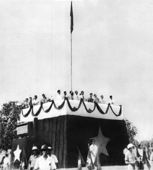 | Ngày 2-9-1945, Chủ tịch Hồ Chí Minh đọc bản Tuyên ngôn Độc lập, khai sinh ra nước Việt Nam Dân chủ Cộng hòa. Ảnh: Tư liệu |