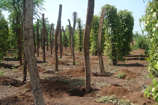| Học viên lớp dạy nghề trồng và chăm sóc cà phê vối thực hành cách nhận biết sâu bệnh hại ngay tại vườn cây. |