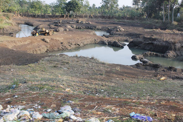 | Một hồ chứa nước ở xã Ea Knuếk (huyện Krông Pak) đã cạn trơ đáy. |
