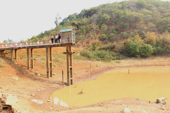 | Người dân buôn T’lang (xã Cư Pơng, huyện Krông Búk) lấy từng can nước tại khe suốt về sinh hoạt. |